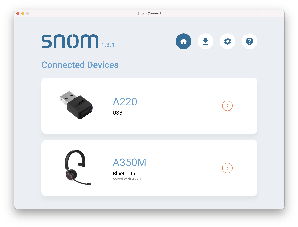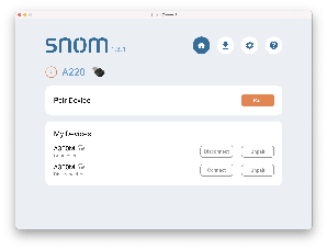 Snom Connect (PC/Desktop App) is a supplemental application running on personal computers that allows enabling/disabling certain software functions on selected Snom devices through an easy-to-use user interface. Additionally, firmware updates can be managed easily. There's also a Snom Connect mobile app, which is limited to control only one Snom device (see specifications and details below)