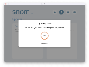 The update process starts transferring the firmware from Snom's download server to the camera, it will then be validated and installed. During the process, the LED flashes slowly in orange colour. | |||